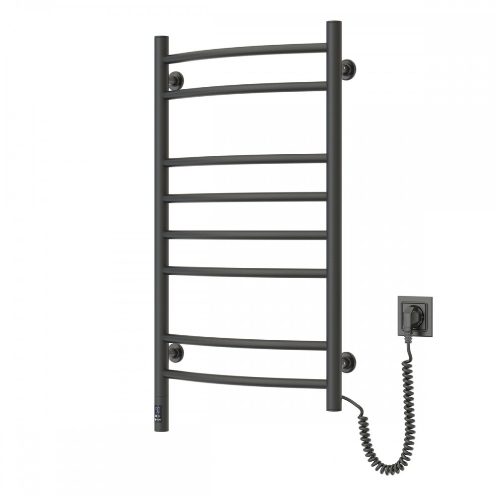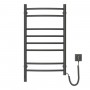 Электрический полотенцесушитель Камелия 480х800 сенсор с таймером, цвет — черный муар, от украинского производителя NAVIN, изготовлен из углеродистой стали, которая отличается высоким качеством и прочностью. Модель имеет порошковое покрытие. Толщина стенки перемычек полотенцесушителя составляет 1,5 мм, а стоек — 2 мм. Мощность модели: 145 Вт; Рабочая температура (*): до 55°C; Степень защиты: IP44; Гарантия: 60 мес. * при температуре в помещении 20°С и номинальном напряжении 230В