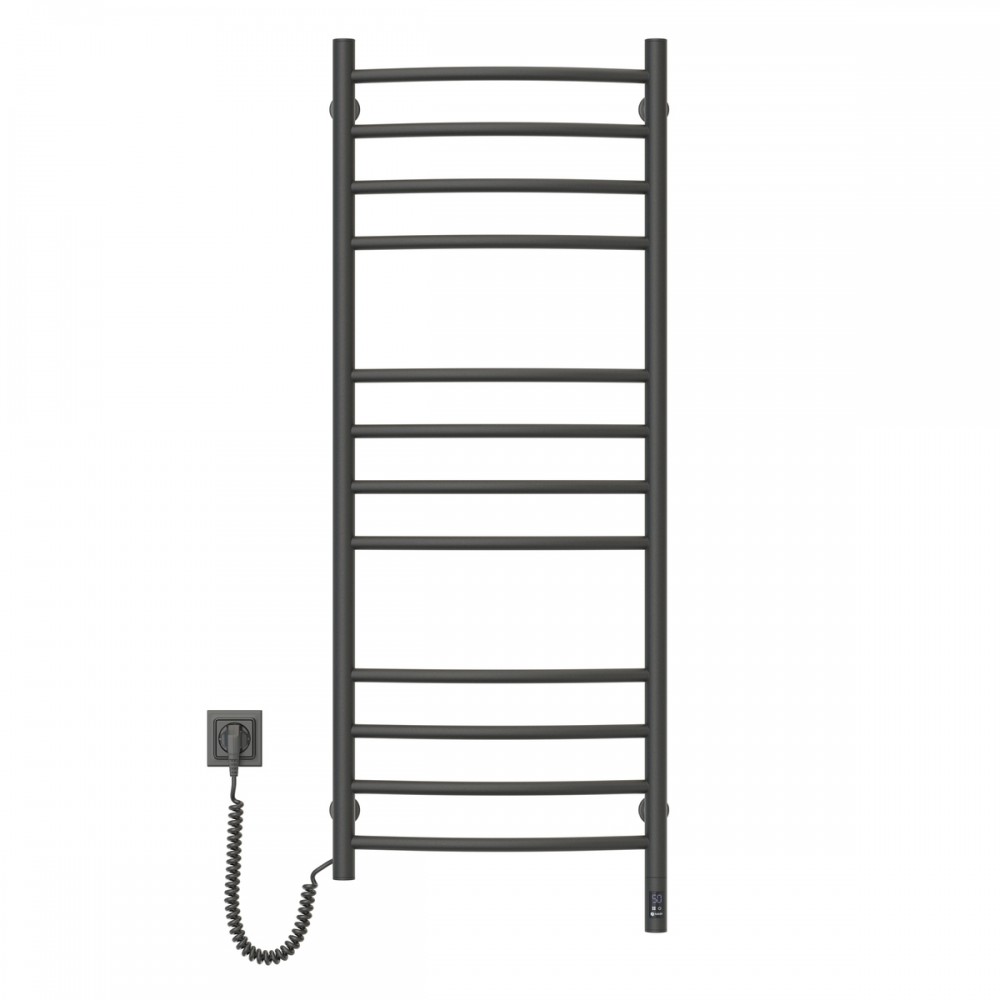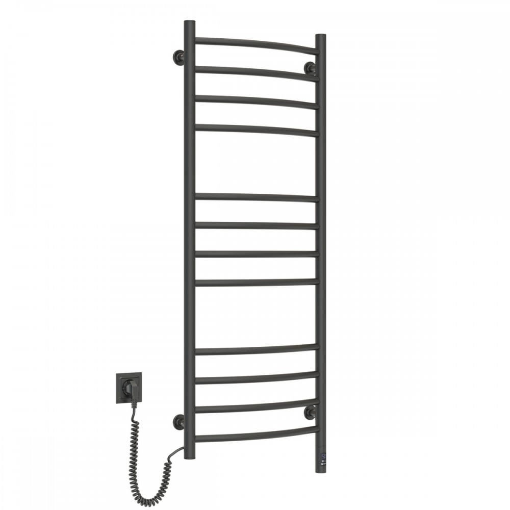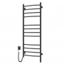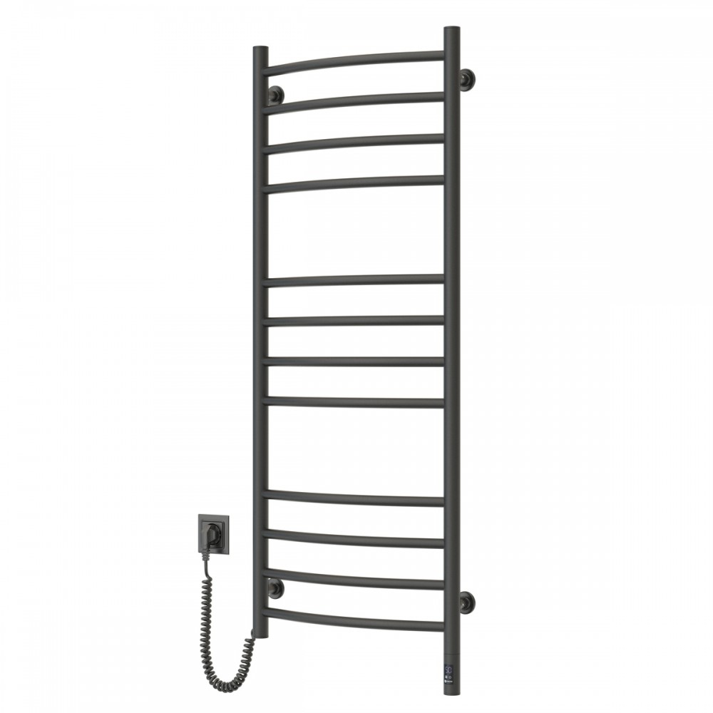 Электрический полотенцесушитель Navin Камелия 480х1200 Sensor, левое подключение, сенсор с таймером, цвет — черный муар, от украинского производителя NAVIN, изготовлен из углеродистой стали, которая отличается высоким качеством и прочностью. Модель имеет порошковое покрытие. Толщина стенки перемычек полотенцесушителя составляет 1,5 мм, а стоек — 2 мм. Мощность модели: 217 Вт; Рабочая температура (*): до 55°C; Степень защиты: IP44; Гарантия: 60 мес. * при температуре в помещении 20°С и номинальном напряжении 230В