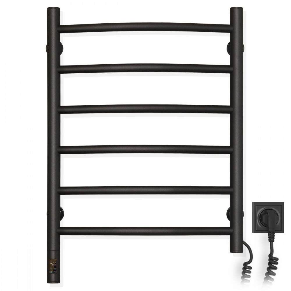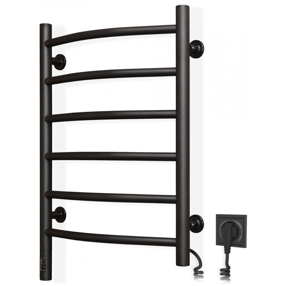 Электрический полотенцесушитель Камелия 480х600 сенсор с таймером, цвет — черный муар, от украинского производителя NAVIN, изготовлен из углеродистой стали, которая отличается высоким качеством и прочностью. Модель имеет порошковое покрытие. Толщина стенки перемычек полотенцесушителя составляет 1,5 мм, а стоек — 2 мм. Мощность модели: 107 Вт; Рабочая температура (*): до 55°C; Степень защиты: IP44; Гарантия: 60 мес. * при температуре в помещении 20°С и номинальном напряжении 230В Вы можете легко контролировать мощность полотенцесушителя и в дальнейшем экономить на расходах на электроэнергию, так как эта модель оснащена удобным и простым в настройке инновационным сенсорным термостатом Sensor со встроенной функцией таймера. Благодаря инновационным технологиям вы можете управлять полотенцесушителем одним касанием. Включить Слегка прикоснитесь к датчику, и ваш полотенцесушитель уже работает. Настройка температуры Каждое касание задает температуру с шагом +5°С. Таймер Задержитесь на 3 секунды. - режим установки таймера, шаг установки - 1 час.